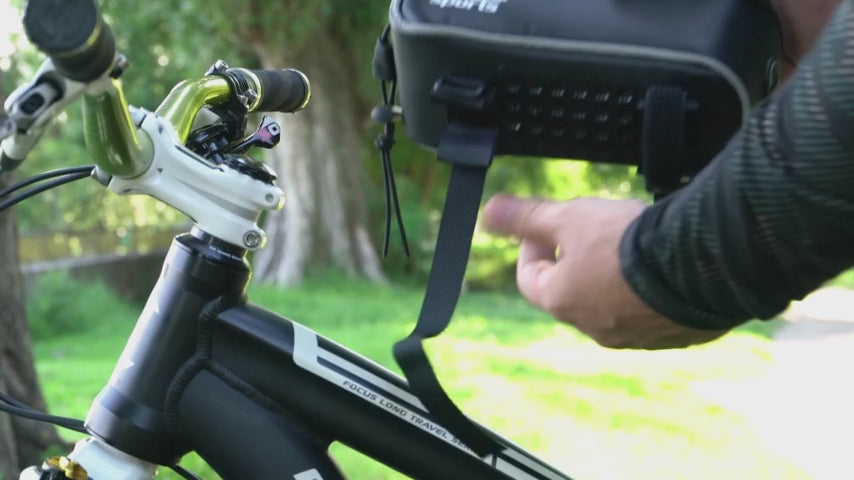 The cell phone bike upper pipe bag has a stable hold on the top tube and the stem of the bicycle. There are 2 Velcro fasteners to attach the bag to the top tube. There is also a fastening option for the stem. Due to the 3-fold fastening, the bag keeps stable on the bike. But with that alone we didn't let it go. As a further stabilizing factor, we have attached a suction cup pad to the underside of the cell phone frame pocket. The bag gives the bag an extra fixed addition. There is even design protection on our suction cup pad. So you only get this addition from the Hilo Sports cell phone bike upper pipe bag. No matter whether for your mountain bike (MTB), e-bike or racing bike, the bag holds. Even gravel paths and bumpy paths are easily accessible.